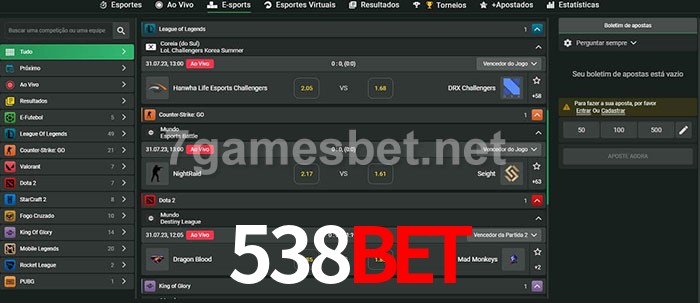 O 538Bet oferece uma grande seleção de opções de apostas em e-sports com probabilidades competitivas